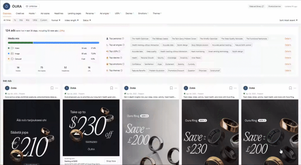 Strategy: Constant refresh. New hooks, angles, and personas weekly.