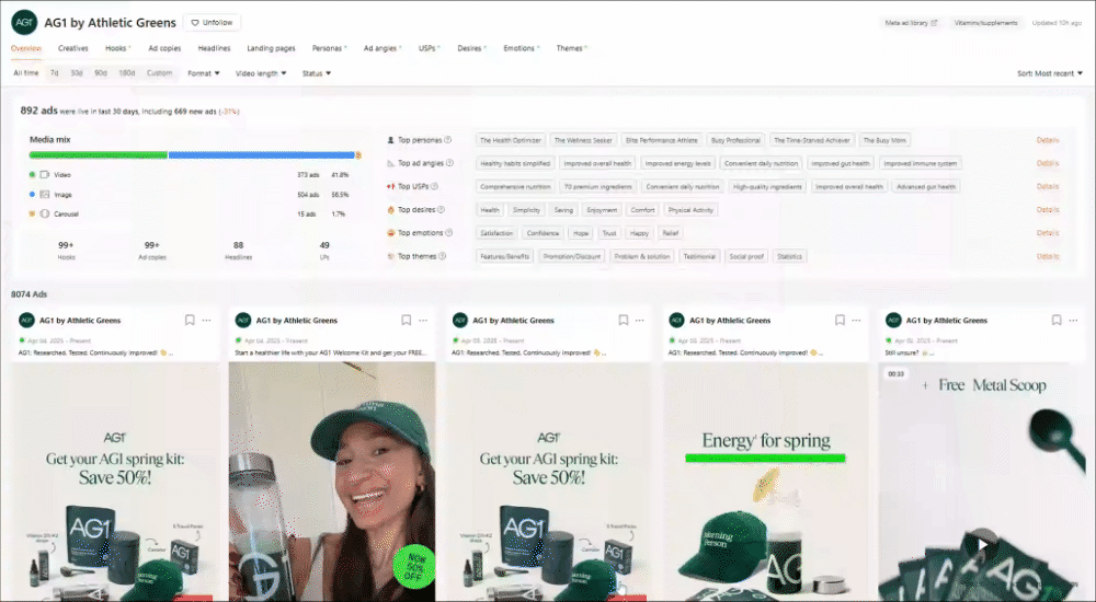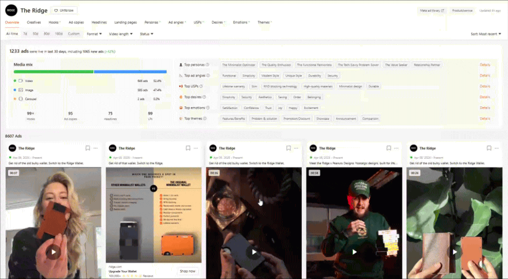 Creatives: 4,274 (52.6% video, 45.1% image)