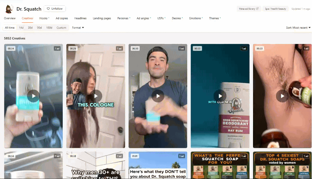 Dr. Squatch is the volume king. With over 5,800 creatives, they’re always testing something new.