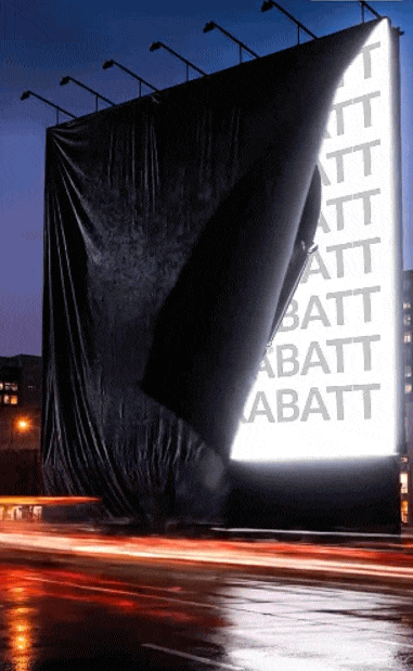 It looks like a real outdoor billboard, then suddenly turns into a 3D product reveal.