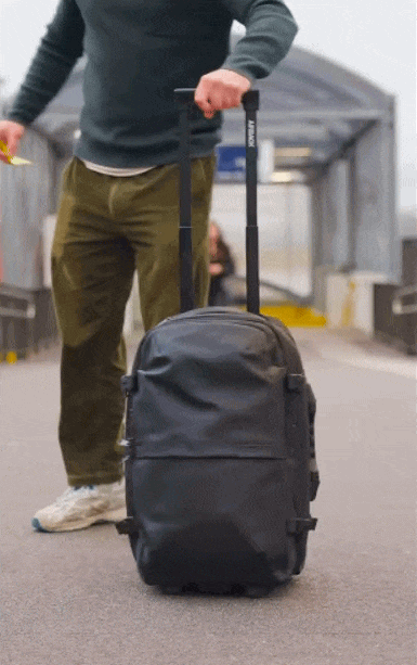 The bagpack stays perfectly still in the center of the frame.