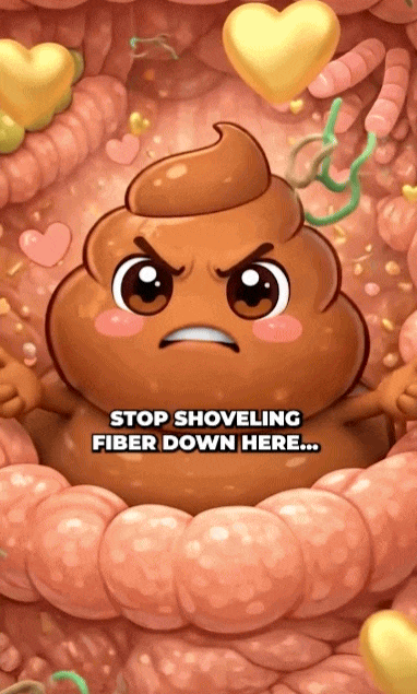 The poop character blames gut bacteria, not itself