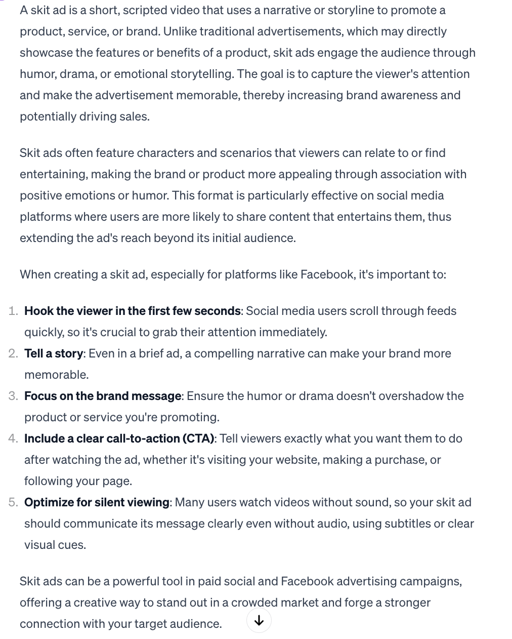 If you don’t know what is Skit ad. ChatGPT came up with a perfect definition: